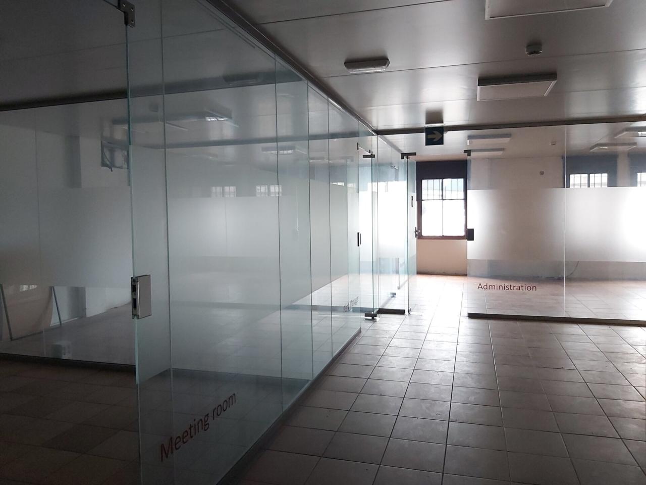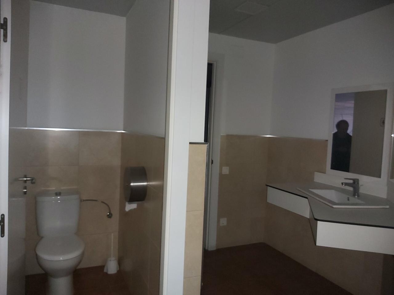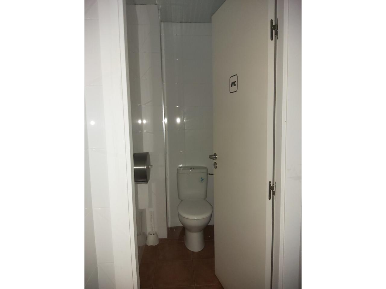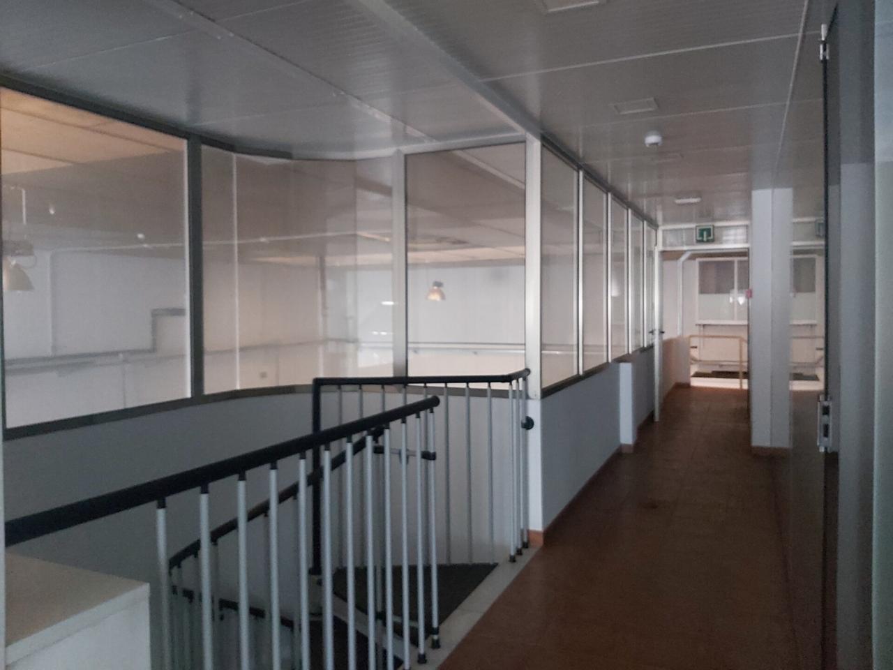 Planta 1ª de 150m2 distribuida en diferentes despachos acristalados, así como aseos y vestuarios independientes para mujeres en perfecto estado. A esta planta se accede desde las escaleras de recepción o directo desde el interior de la nave, con dos accesos independientes para clientes y personal. Desde esta planta se divisa perfectamente el espacio de trabajo en planta inferior.